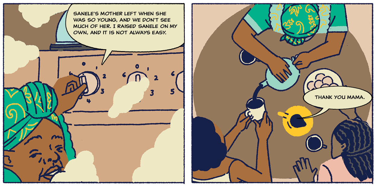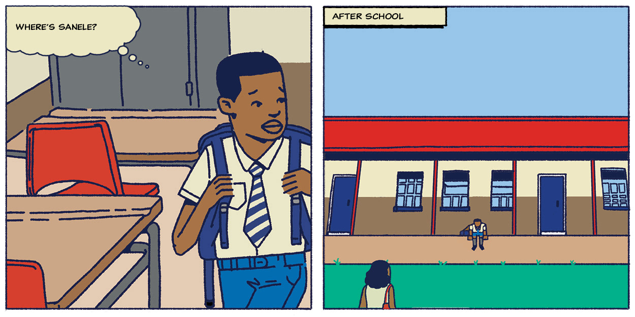 Where's Sanele Is a story about a you boy who's friend didn't return to school because her grandmother didn't know how to get her a birth certificate.