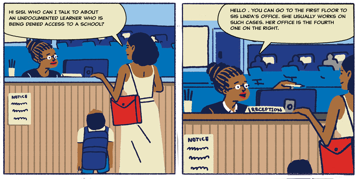 The Legal resource centre commissioned this comic to educate parents about about the unlawful exclusion of learners in public schools.